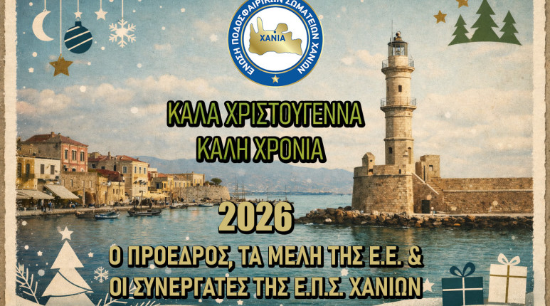 Ο Πρόεδρος, τα Μέλη της Εκτελεστικής Επιτροπής και οι συνεργάτες της Ε.Π.Σ. Χανίων σας εύχονται Καλά Χριστούγεννα και Καλή Χρονιά με Υγεία!
