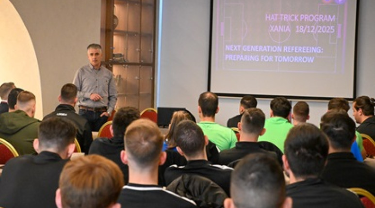 Πραγματοποιήθηκε την Πέμπτη 18/12 στο Ξενοδοχείο CIVITEL AKALI στα Χανιά, το ημερήσιο Σεμινάριο της ΚΕΔ/ΕΠΟ με τη συμμετοχή των Διαιτητών & Βοηθών Διαιτητών Κατηγορίας Κ3 και Διαιτητών Κ4 Προχωρημένου Σταδίου, για τις Ενώσεις της Κρήτης στα πλαίσια του προγράμματος HAT TRICK της UEFA.