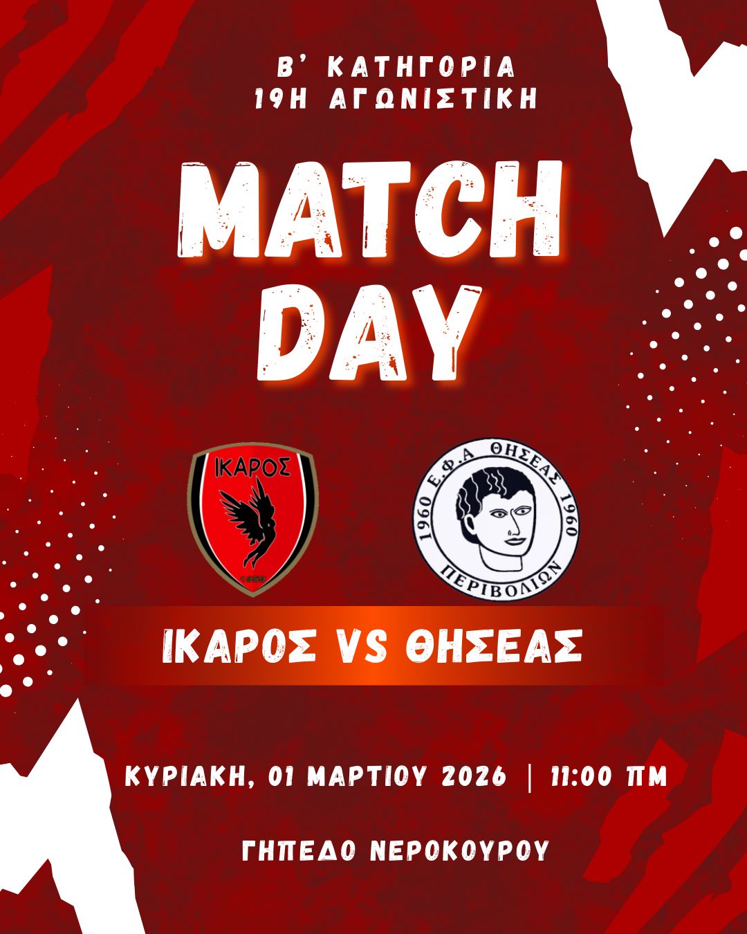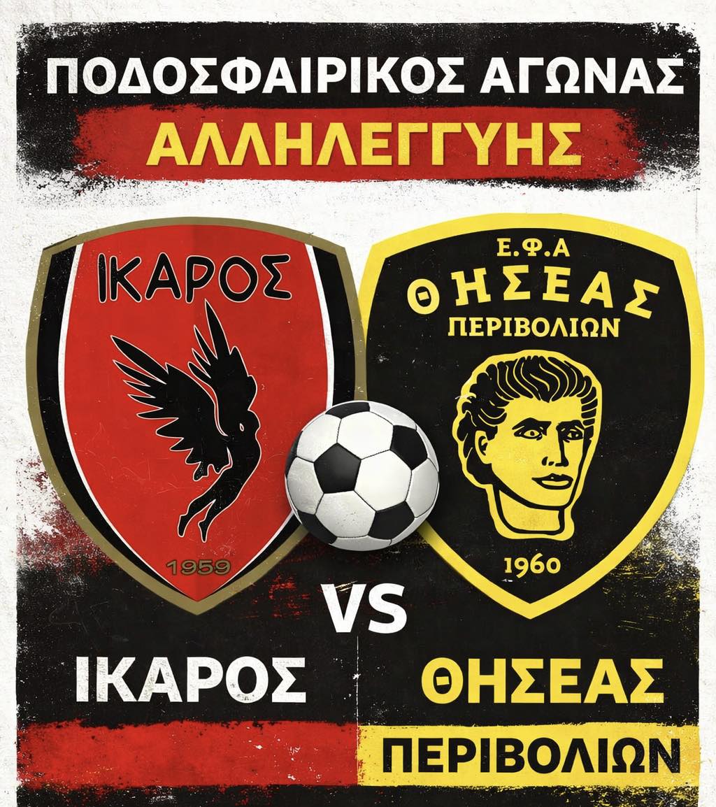 Χαρακτήρα αγώνα αλληλεγγύης θα έχει το παιχνίδι της 19ης αγωνιστικής της Β’ Κατηγορίας, ανάμεσα σε Ικαρο Μουρνιών και Θησέα, την Κυριακή 01-03-2026 και ώρα 11:00, στο γήπεδο Νεροκούρου.